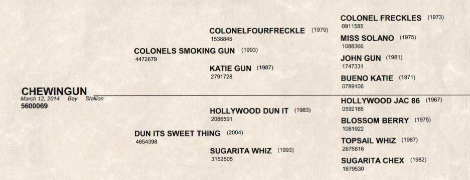 La genetica de CHEWINGUN incluye a TOPSAIL WHIZ,
